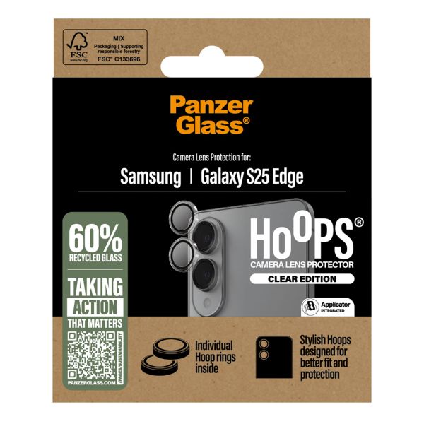 PanzerGlass Camera Protector Hoops Optic Rings voor de Samsung Galaxy S25 Edge - Transparant